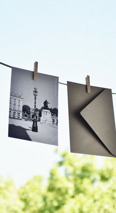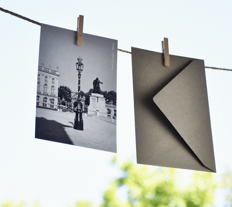 Une carte postale avec son enveloppe